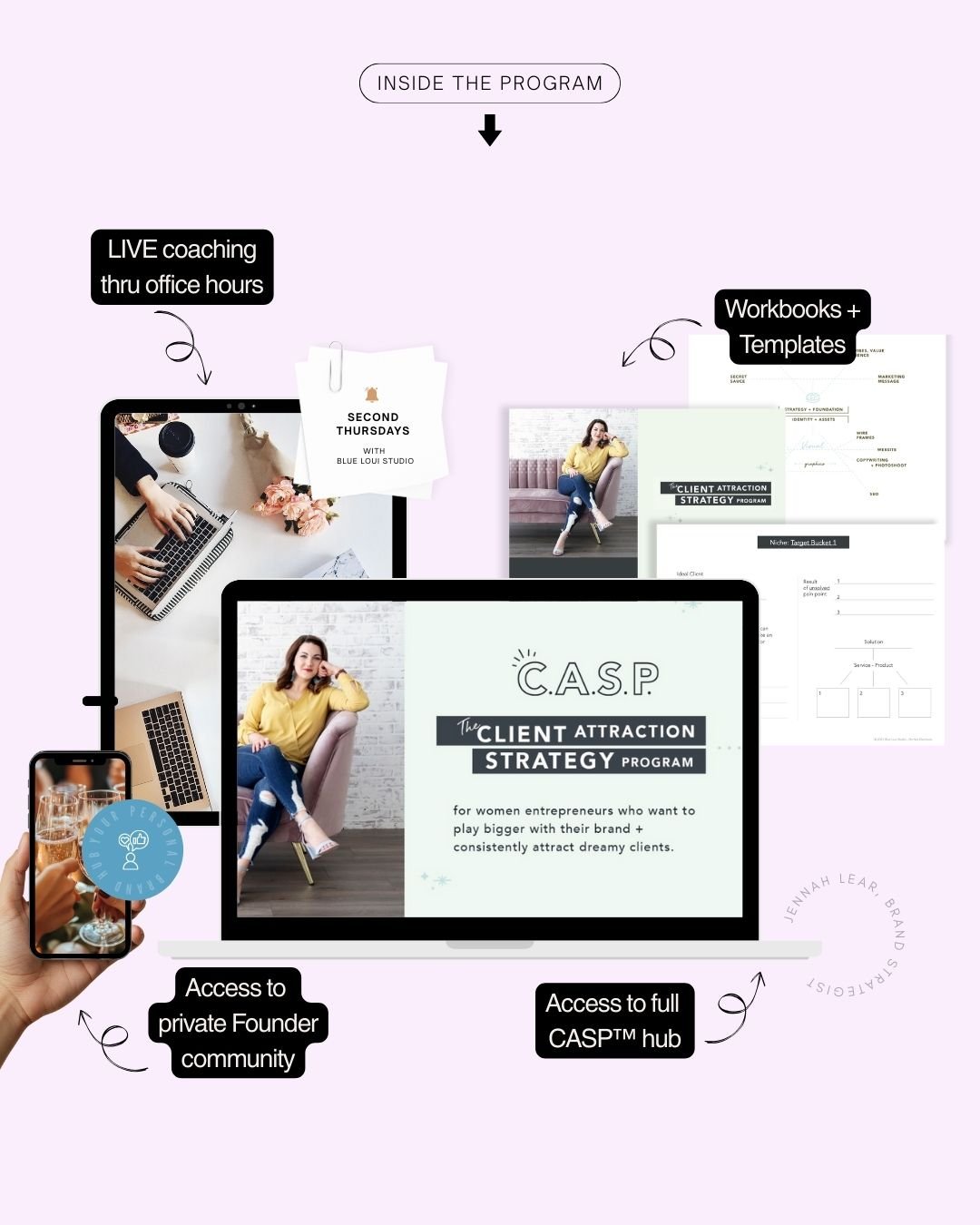 ✅ A simplified and custom marketing plan that saves you time and attracts leads with ease (it’s time to convert those followers + lurkers babe)